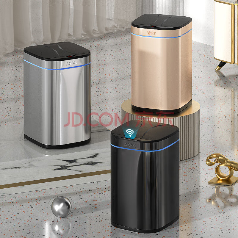 商品相册:AKBK不锈钢智能感应垃圾桶12L黑色自动大号客厅厨房卫生间厕所电动第