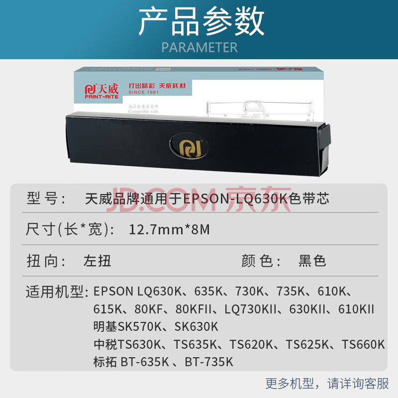商品相册:天威LQ630K色带 适用于爱普生LQ615KII 630KII 635K 730K 730KII 735KII 610K 610KII 635KII 80KFII第
