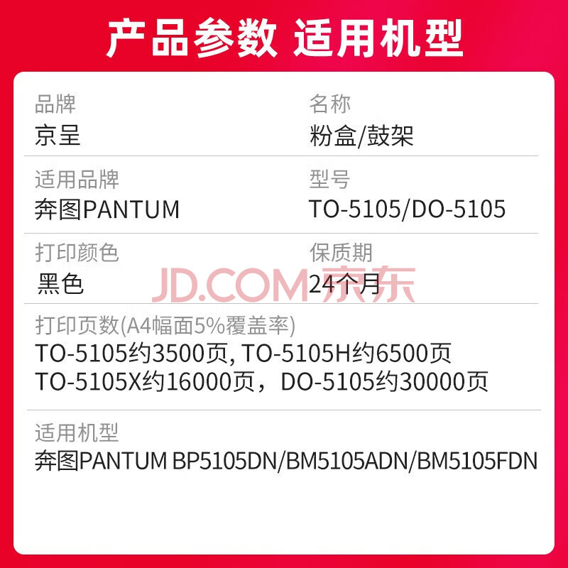 商品相册:京呈TO-5105鼓架 适用奔图BP5105DN 5105硒鼓BM5105FDN BM5105ADN BM5105FDN激光打印机粉盒第