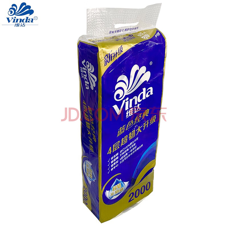 商品相册:维达(vinda) 三层卫生纸卷筒纸 200g 10卷/提 提装销售 3提起售 蓝色经典 V4073第