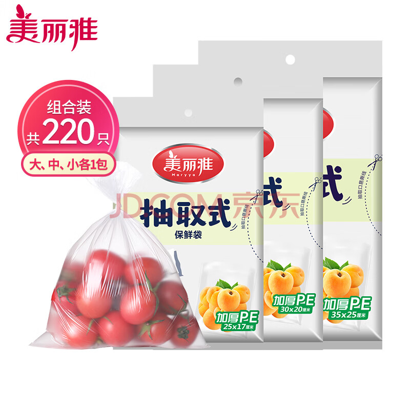 商品相册:美丽雅 一次性保鲜袋食品级组合装三合一共220只 大中小号加厚袋子第