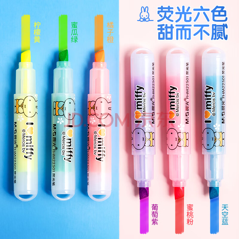商品相册:晨光文具6色荧光笔 可爱单头记号笔 醒目重点标记笔 米菲系列便携手账手绘笔手账笔 6支/袋FHM22501第