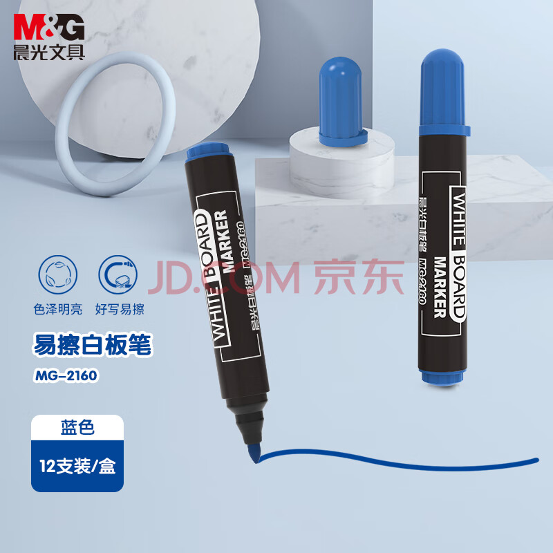商品相册:晨光(M&G)文具可擦白板笔 单头办公会议笔 易擦大容量白板笔 蓝色12支/盒MG2160第