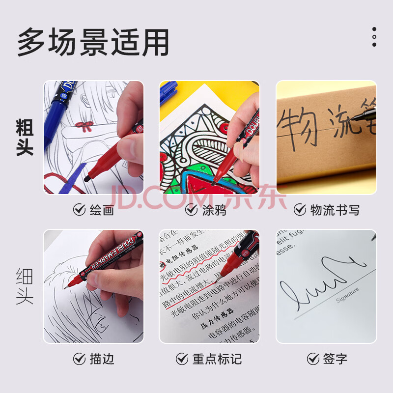 商品相册:晨光(M&G)文具 蓝色粗细双头物流笔 防水马克笔油性记号笔 儿童学生勾线笔升级装 办公用品12支MG2130第