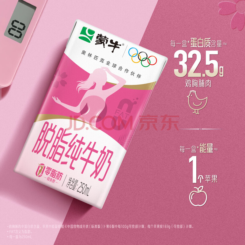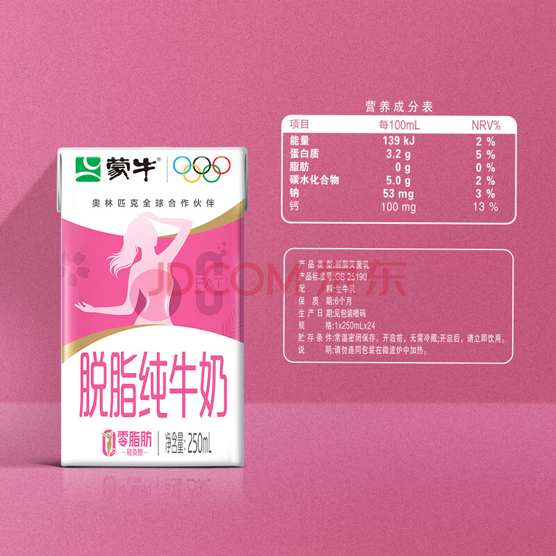 商品相册:蒙牛脱脂纯牛奶250ml*24盒 零脂肪早餐健身减脂第