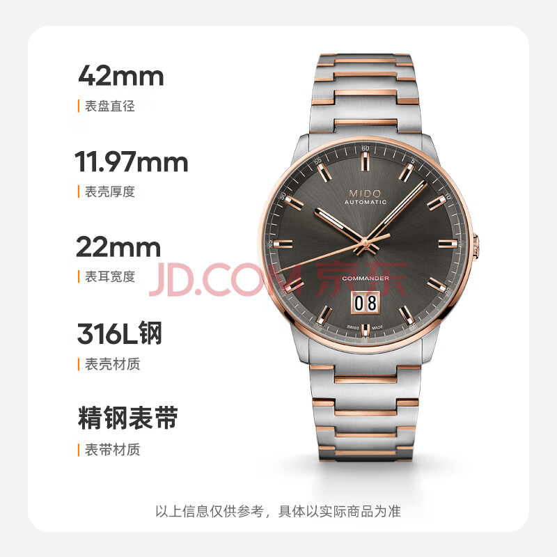 商品相册:美度(MIDO)瑞士手表 指挥官系列 纪念款 长动能 商务休闲 机械钢带男表第