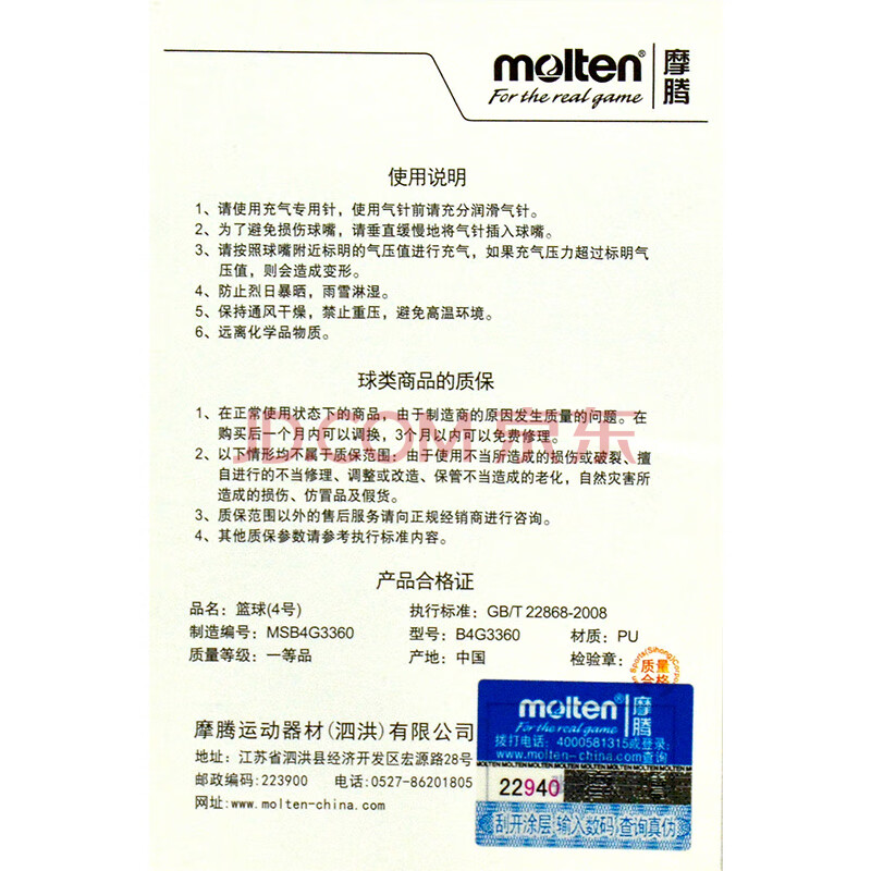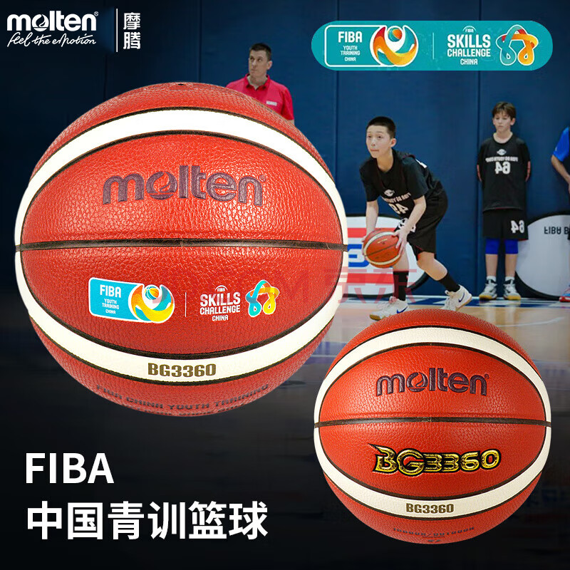 商品相册:摩腾(molten)4号篮球B4G3360-YT吸湿PU儿童幼儿园国际篮联FIBA中国青训队用球第