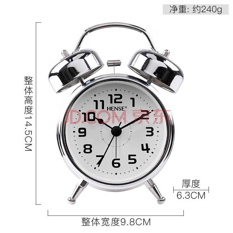商品相册:汉时(Hense)闹钟学生专用起床神器儿童床头懒人超大声闹表桌面小时钟HA70电镀开学季第