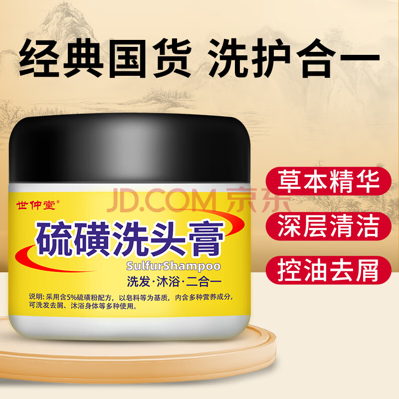 商品相册:世仲堂硫磺洗头膏2瓶装(高达5%含量)洗发水去屑止痒毛囊头皮控油皂男女第