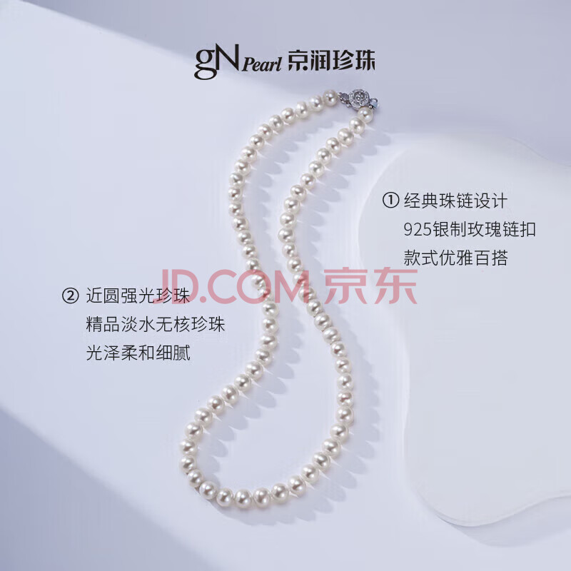 商品相册:京润珍珠项链女925银韶华淡水珍珠项链精选近圆强光母亲节礼物送爱人第