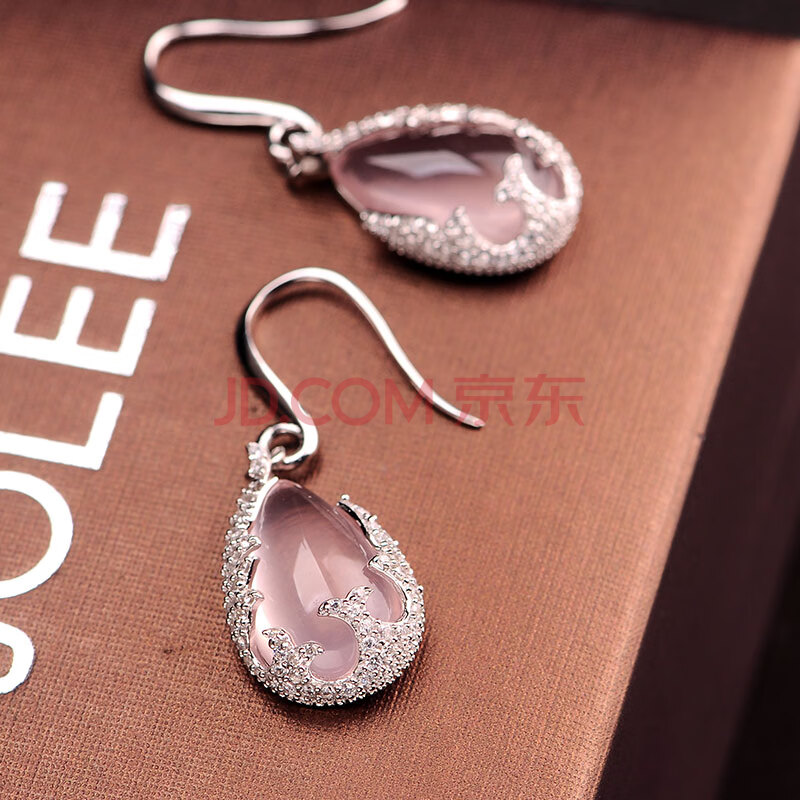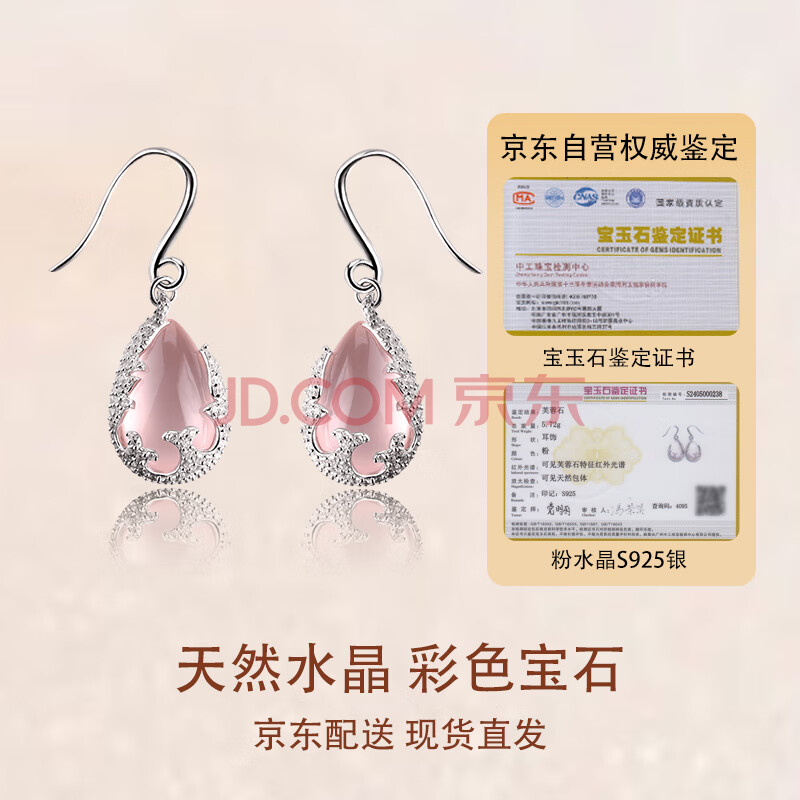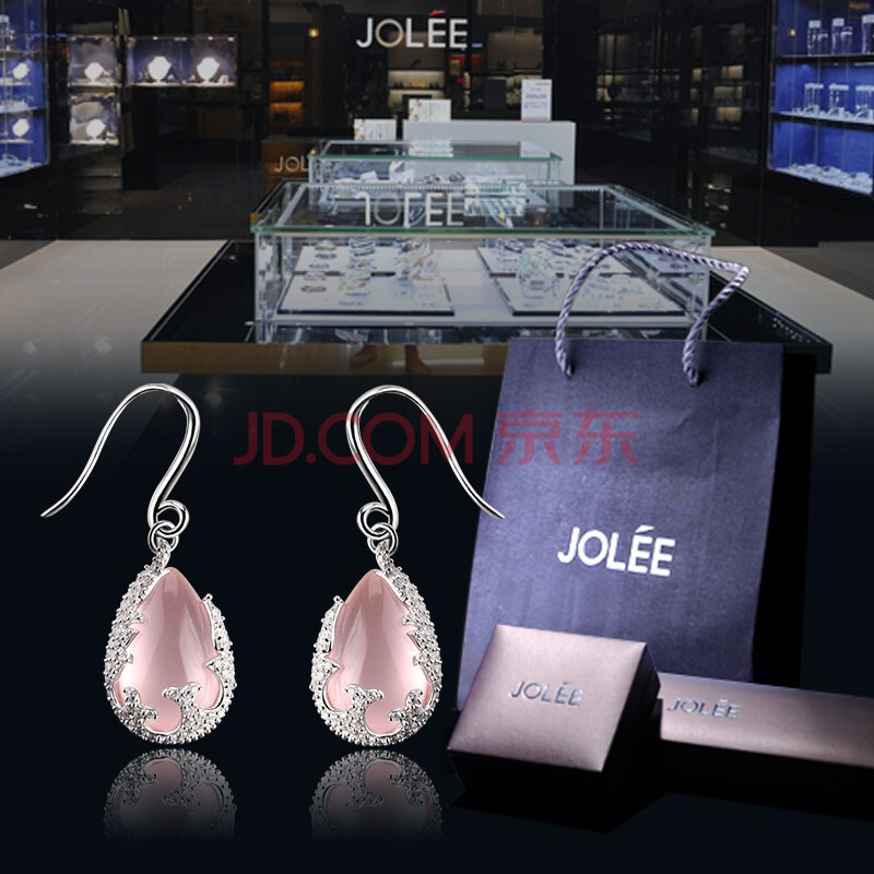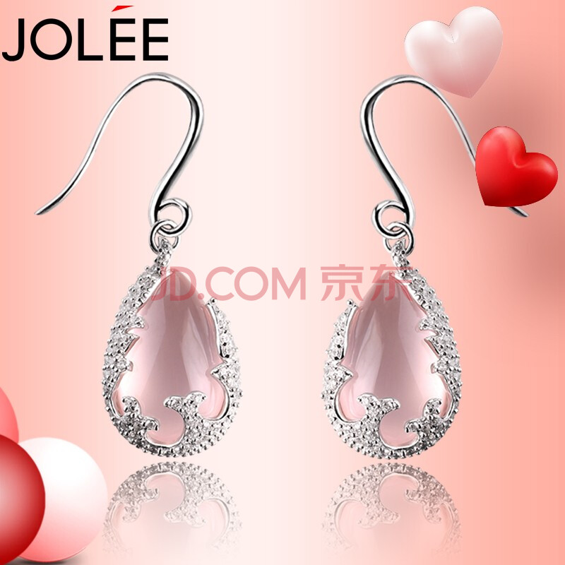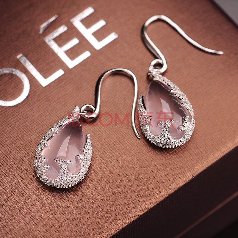 商品相册:JOLEE耳环粉水晶S925银耳坠时尚芙蓉石百搭耳钉饰品送女生礼物一物一证第