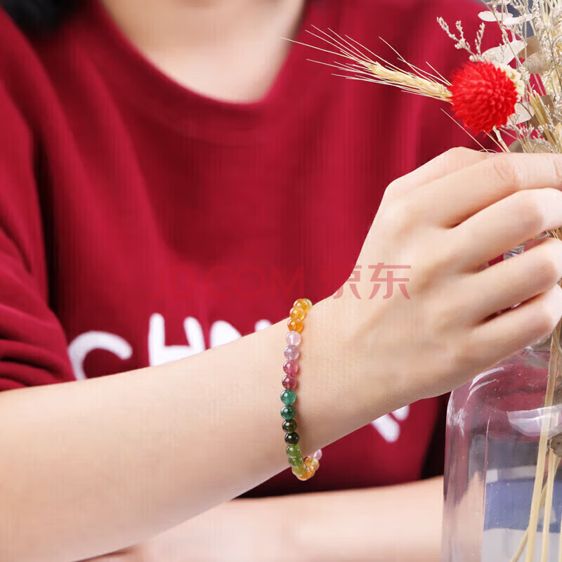 商品相册:石玥珠宝收藏级6-7mm彩虹碧玺手链转运珠天然水晶手串男女士款 水晶玛瑙第