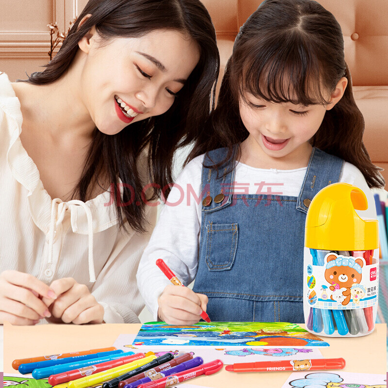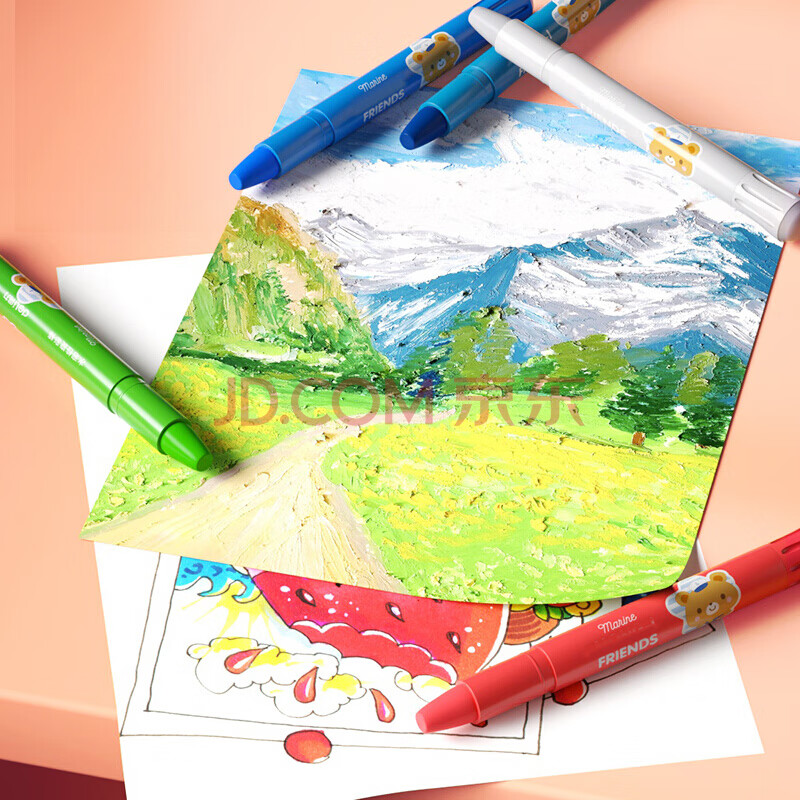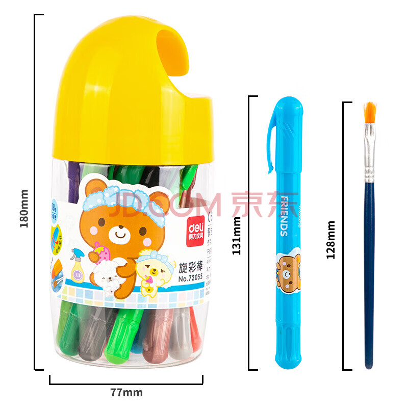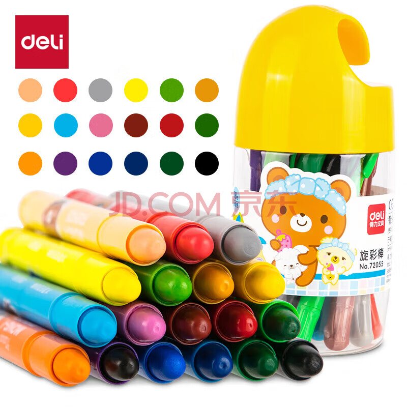 商品相册:得力(deli)18色水溶性油画棒不易摔断丝滑蜡笔美术工具彩色涂色彩笔幼儿绘画72055女孩儿童礼物第