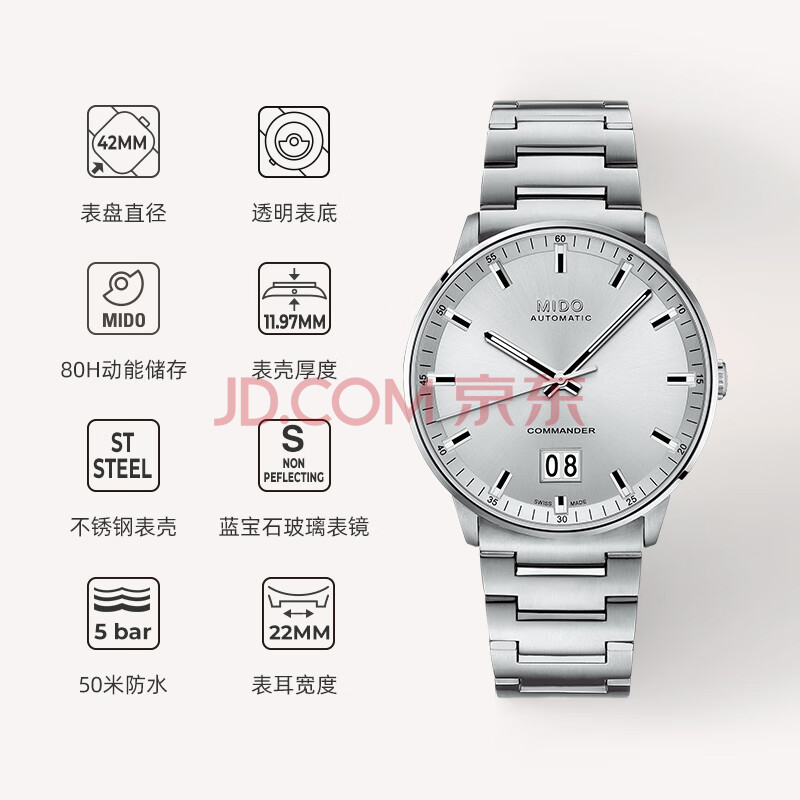 商品相册:美度(MIDO)瑞士手表 指挥官 纪念款 商务休闲 机械钢带男表第