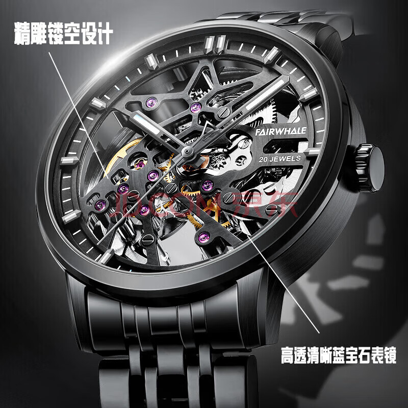 商品相册:马克华菲(MARK FAIRWHALE)男士手表全自动机械手表防水镂空十大名表腕表生日礼物送男友6040第1张/共8