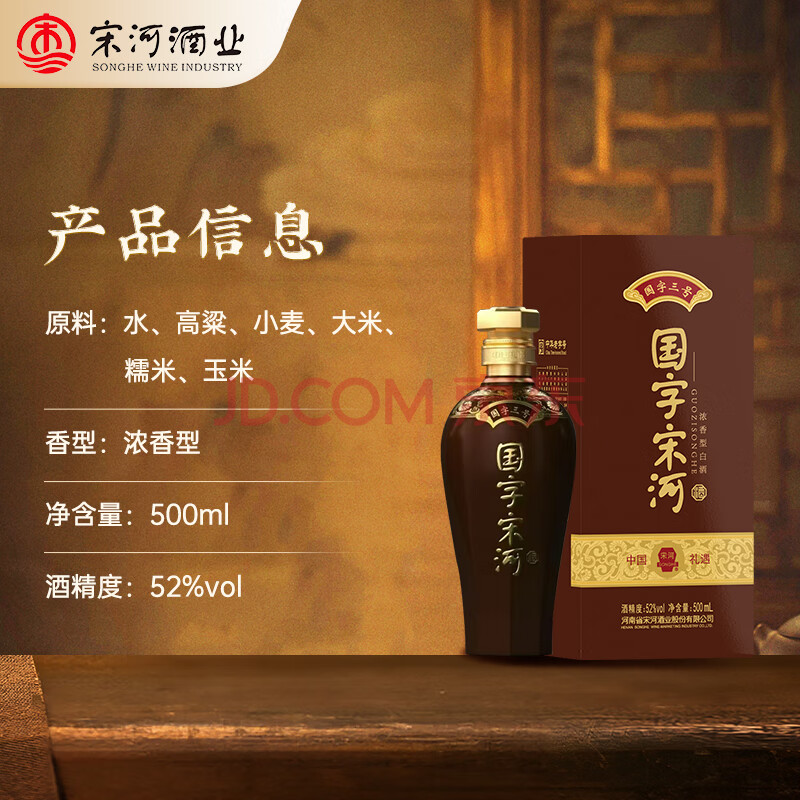 商品相册:宋河粮液 国字三号 浓香型白酒 52度 500ml*6瓶 整箱装纯粮酒送礼名酒第