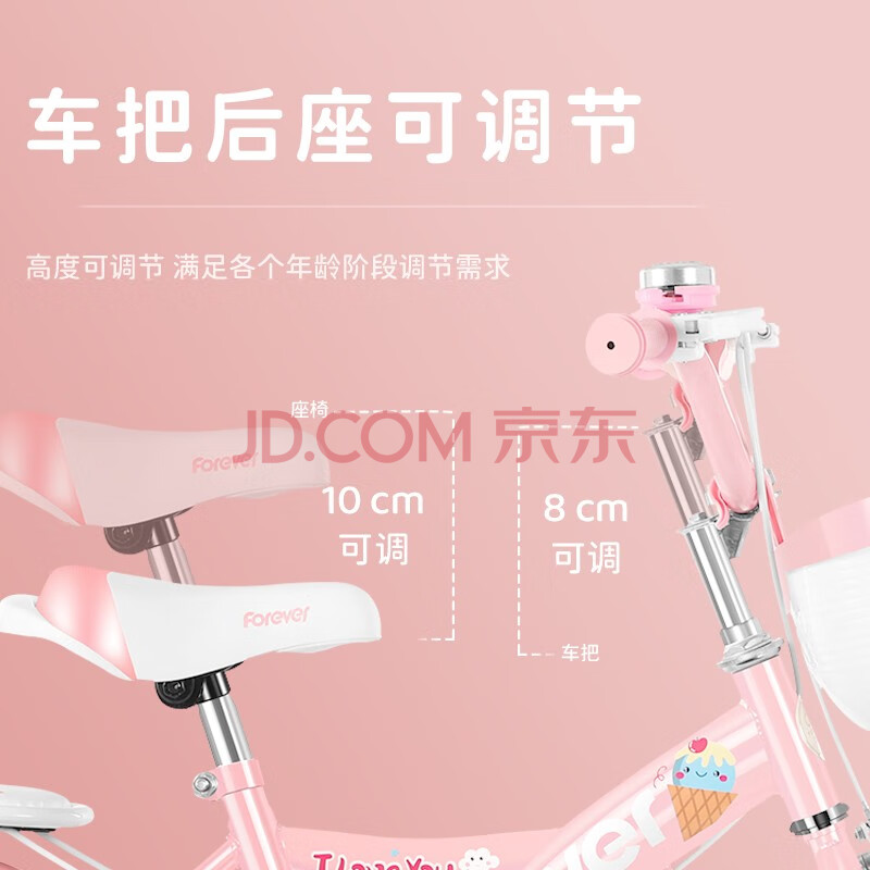 商品相册:永久(FOREVER)儿童自行车6-10岁男女款宝宝辅助脚踏车 公主粉16寸适合105-135cm第