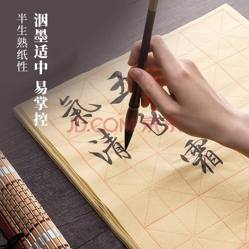 商品相册:六品书院毛边纸 书法练习专用 写毛笔字仿古竹浆米字格作品 竹浆毛边米字格9cm*28格50张第