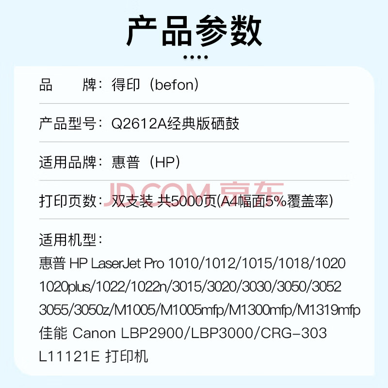商品相册:得印q2612a 12a硒鼓2支装 适用惠普1020硒鼓hp m1005 1020plus 1010 1018佳能lbp2900 crg303打印机墨盒第