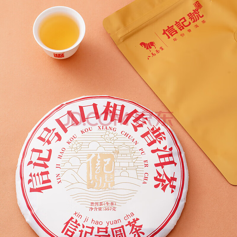 商品相册:八马茶业信记号 中华老字号 普洱茶 西双版纳生普茶叶357g 2021年饼茶第