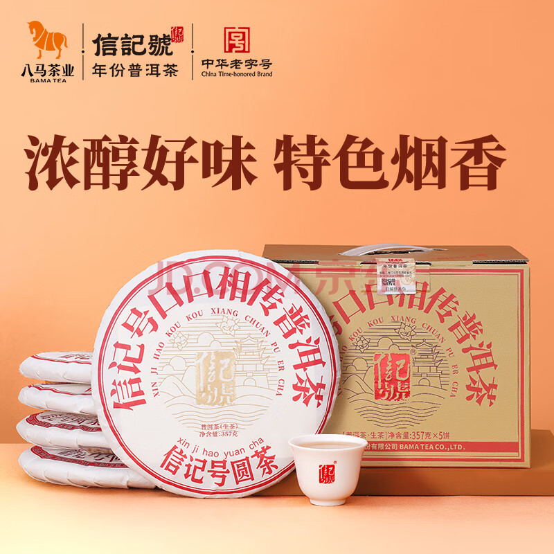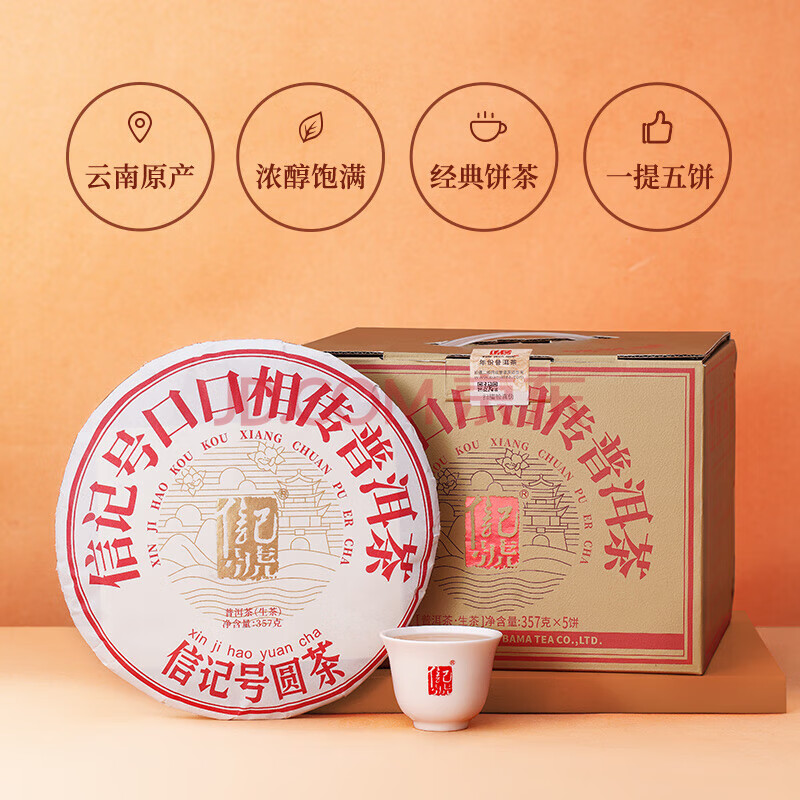 商品相册:八马茶业信记号中华老字号 普洱茶 云南生普357g*5饼 2021年提装茶叶送礼第