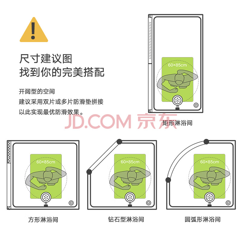 商品相册:大江浴室防滑垫卫生间淋浴房脚垫厕所卫浴老人洗澡防摔地垫85x60cm第