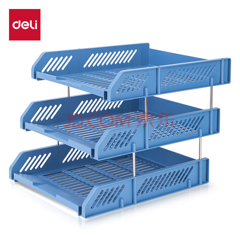 商品相册:得力(deli)三层镂空收纳文件座自由拆卸组装文件盘/文件框栏桌面档案收纳盒文件置物架管理 蓝色9209第