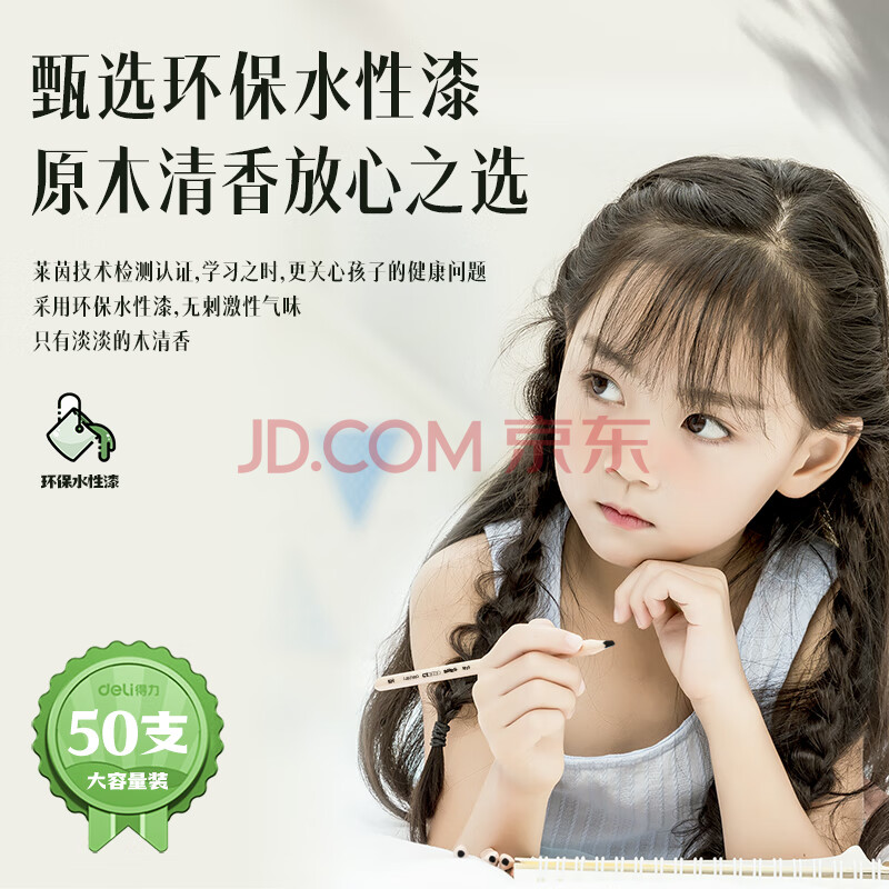 商品相册:得力(deli)50支HB木之然系列六角笔杆原木HB铅笔素描绘画书写绘图学生铅笔生日HC908学生开学文具第