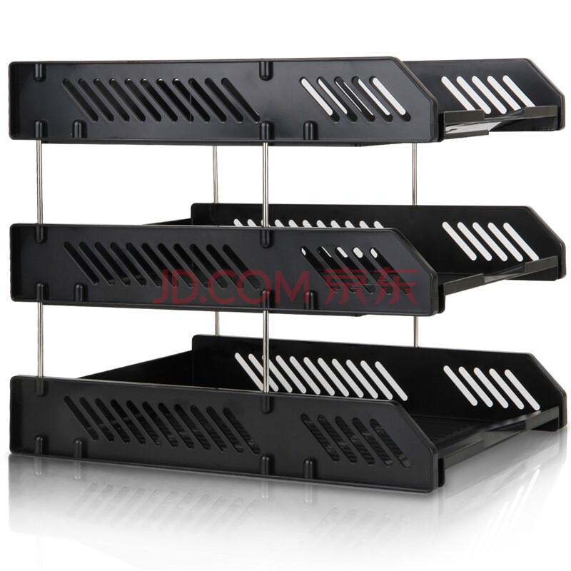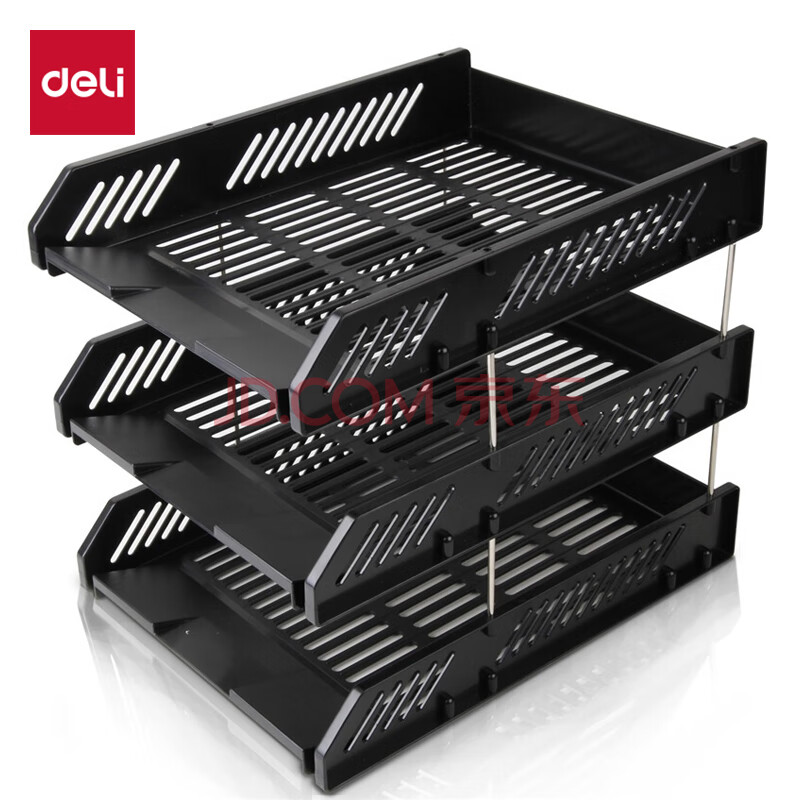 商品相册:得力(deli)三层镂空收纳文件座自由拆卸组装文件盘/文件框栏桌面档案收纳盒文件置物架管理 黑色9209第