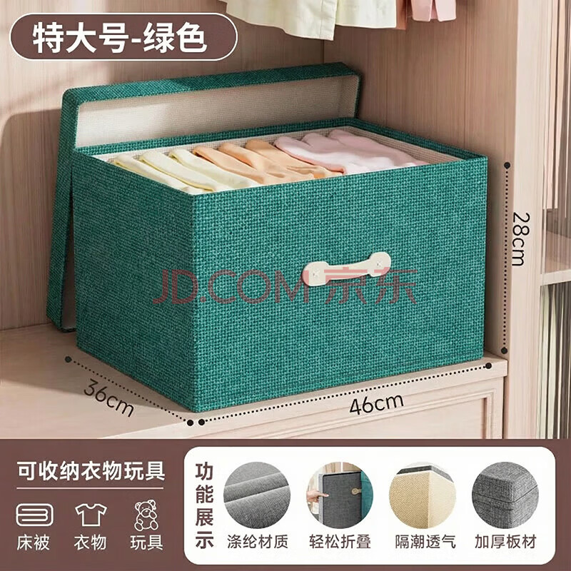 商品相册:佳帮手衣服收纳箱布艺衣物收纳盒搬家整理储物箱可折叠 绿色特大号1只第