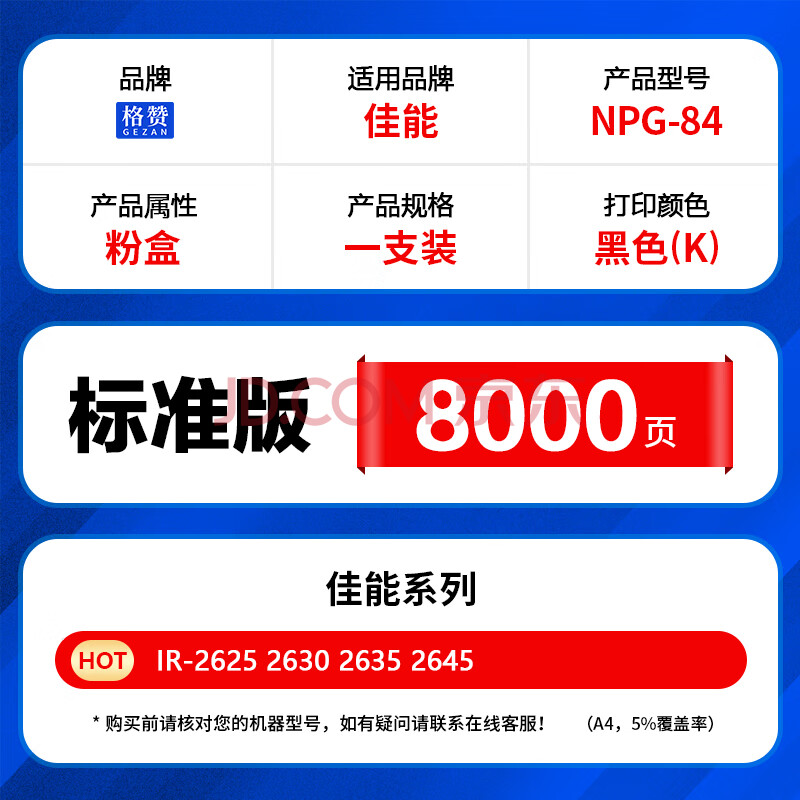 商品相册:格赞NPG-84粉盒适用佳能2625粉盒ir2625 2630 2635 2645 Canon ImageRUNNER墨粉npg84打印机硒鼓墨粉盒第