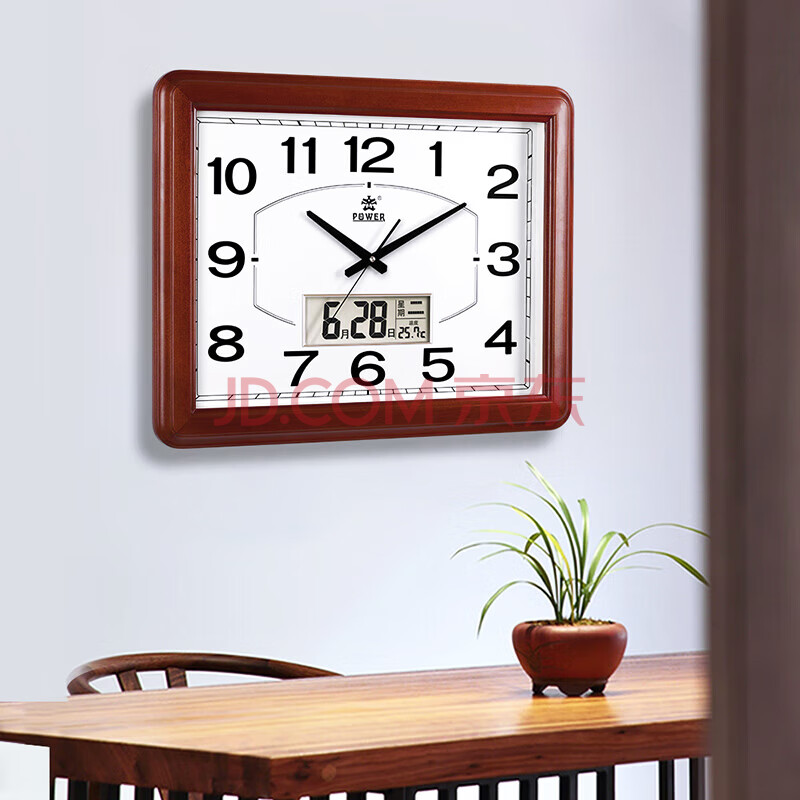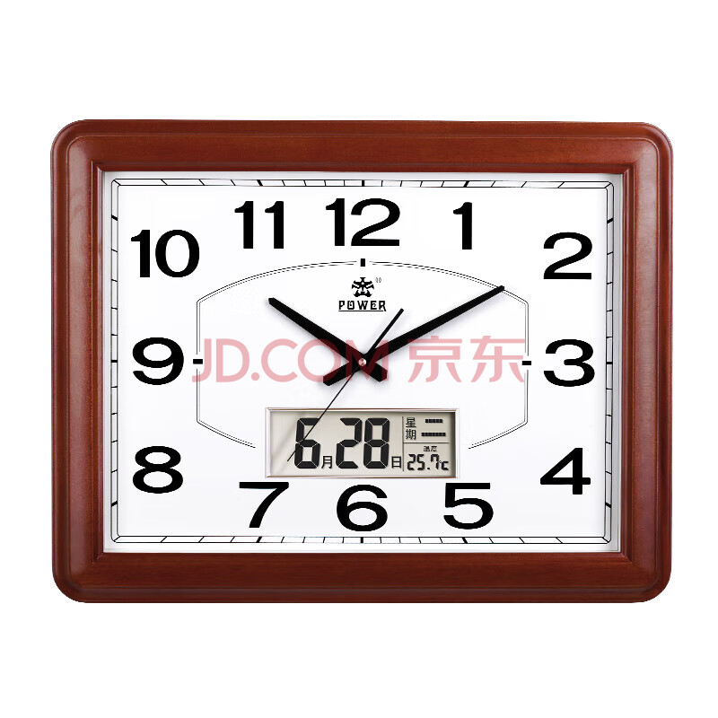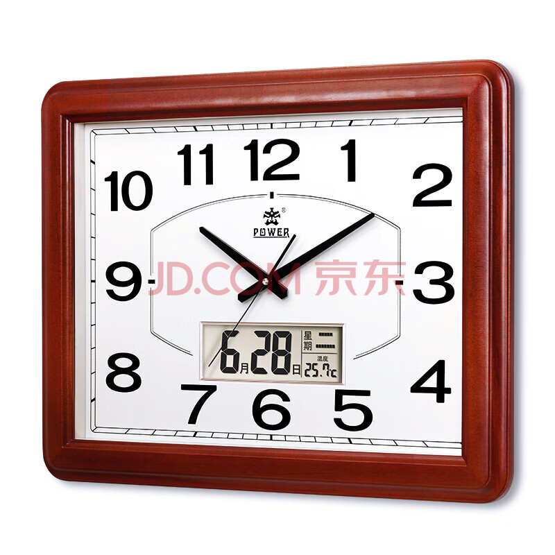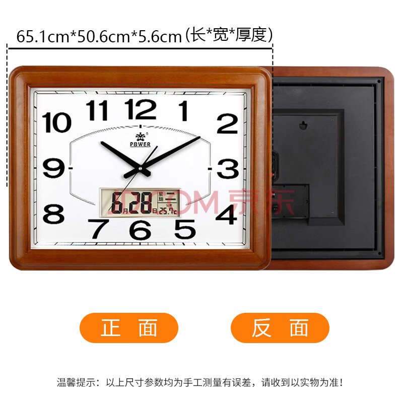 商品相册:POWER霸王大号挂钟 长65cm实木客厅方形钟表中式家用挂表0119AKS第