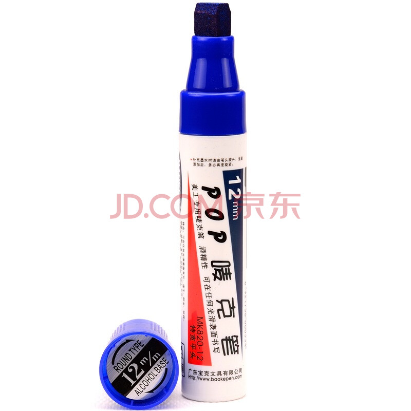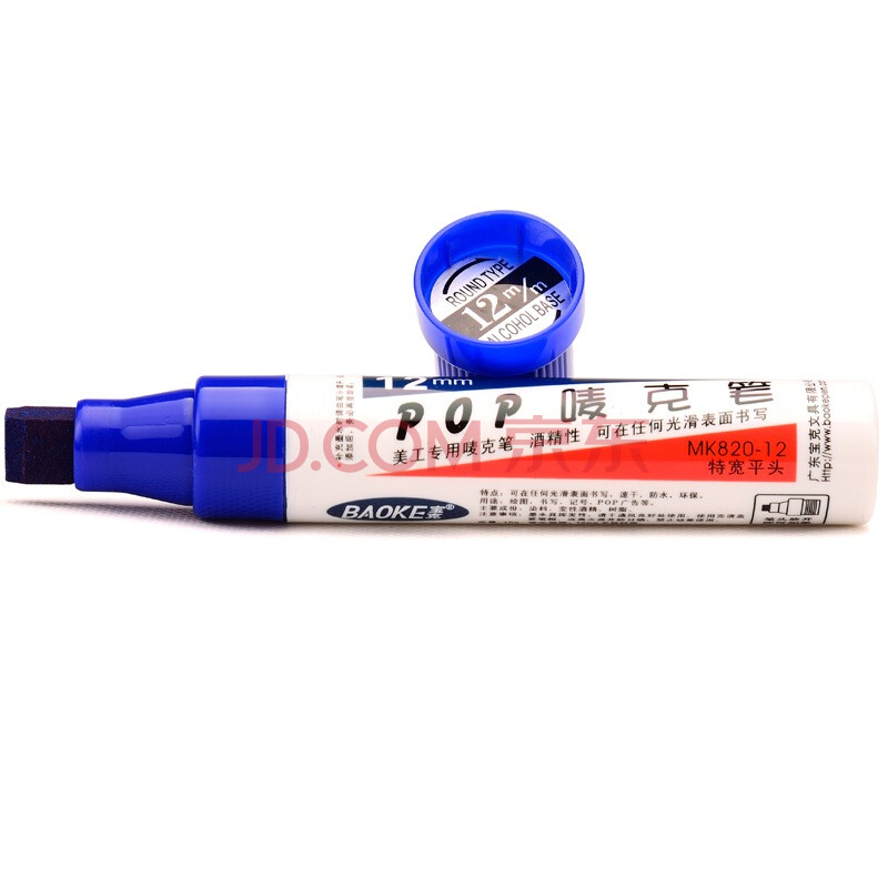 商品相册:宝克(BAOKE)【热门商品】12mm 蓝色POP唛克笔 海报广告画笔 彩色马克笔记号笔 2支装 MK820-12第