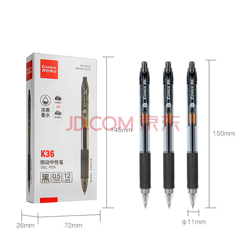 商品相册:齐心(Comix)【热门商品】12支装0.5mm黑色办公按动中性笔/水笔/签字笔 办公文具 K36第