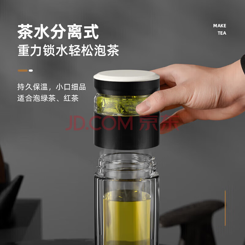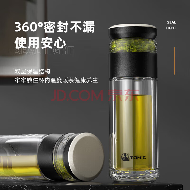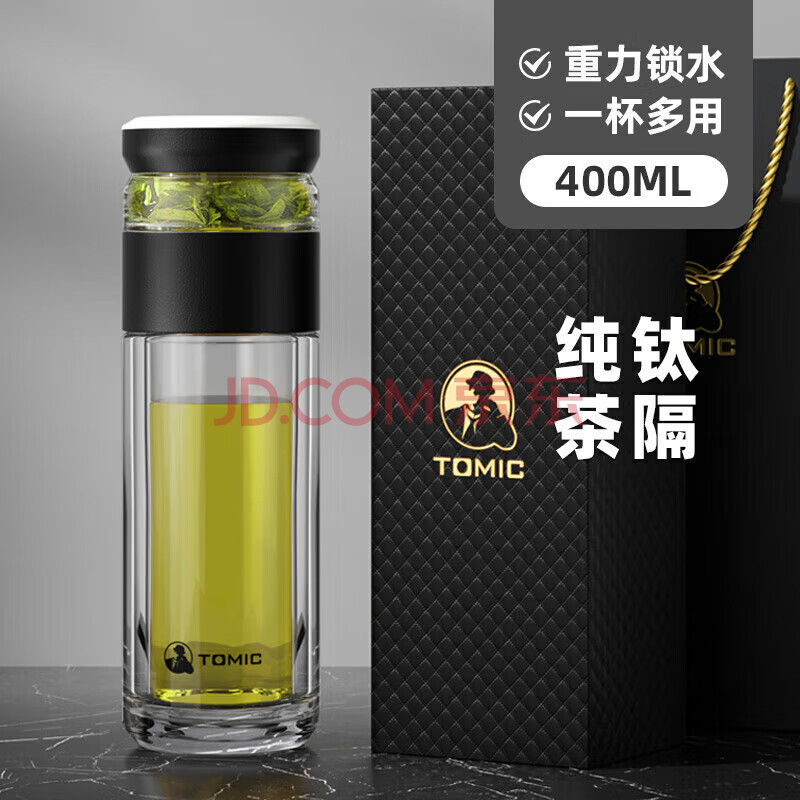 商品相册:特美刻(TOMIC)茶水分离泡茶杯抗菌双层玻璃杯男杯子钛茶隔茶杯男士团购定制第