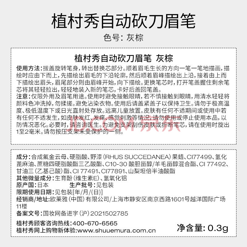 商品相册:植村秀自动砍刀眉笔 灰棕0.3g 防水防汗自然 化妆师 生日礼物送女友男友第