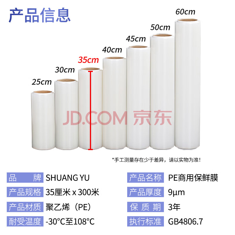 商品相册:SHUANG YU手撕保鲜膜大卷PE材质300米*30cm商用生鲜蔬果厨房超市食堂食品膜第