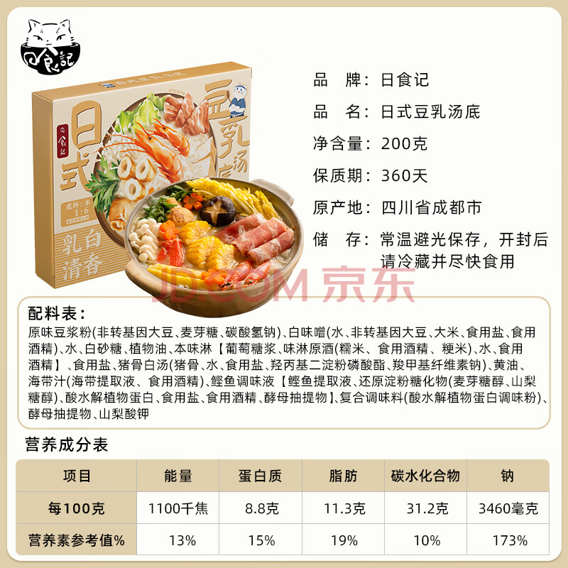 商品相册:日食记日式豆乳锅底200g不辣火锅底料调味料关东煮料包家庭汤料包炖菜汤第