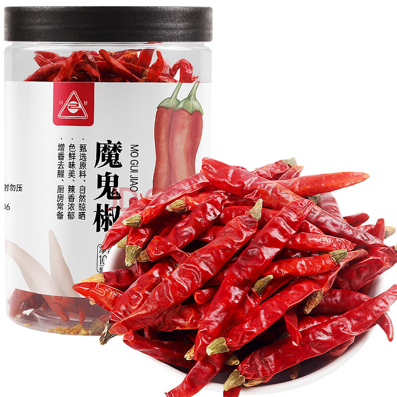 商品相册:川珍魔鬼椒100g罐装干辣椒印度椒家用调料特香特辣炒菜火锅底料香辛料第