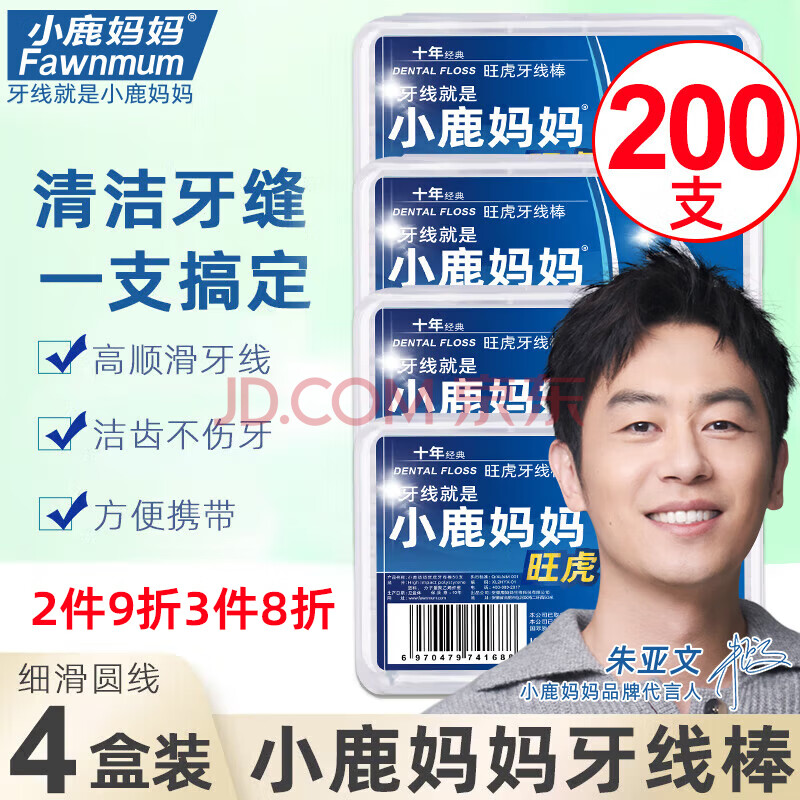 商品相册:小鹿妈妈圆线牙线棒50支X4盒共200支剔牙签清洁齿缝牙线家庭装超细便捷第