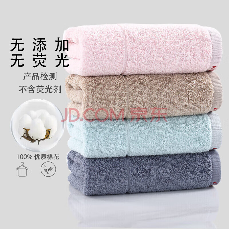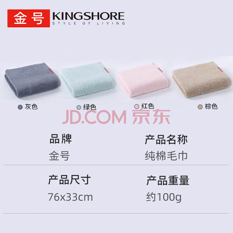 商品相册:金号纯棉毛巾 吸水擦脸面巾 A类洗脸巾素色4条100g/条76*33cm第