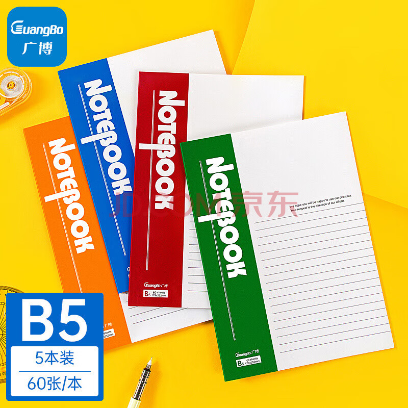 商品相册:广博(GuangBo)B5笔记本子办公记事本子日记本软抄本 60张5本装颜色随机GBR0795第
