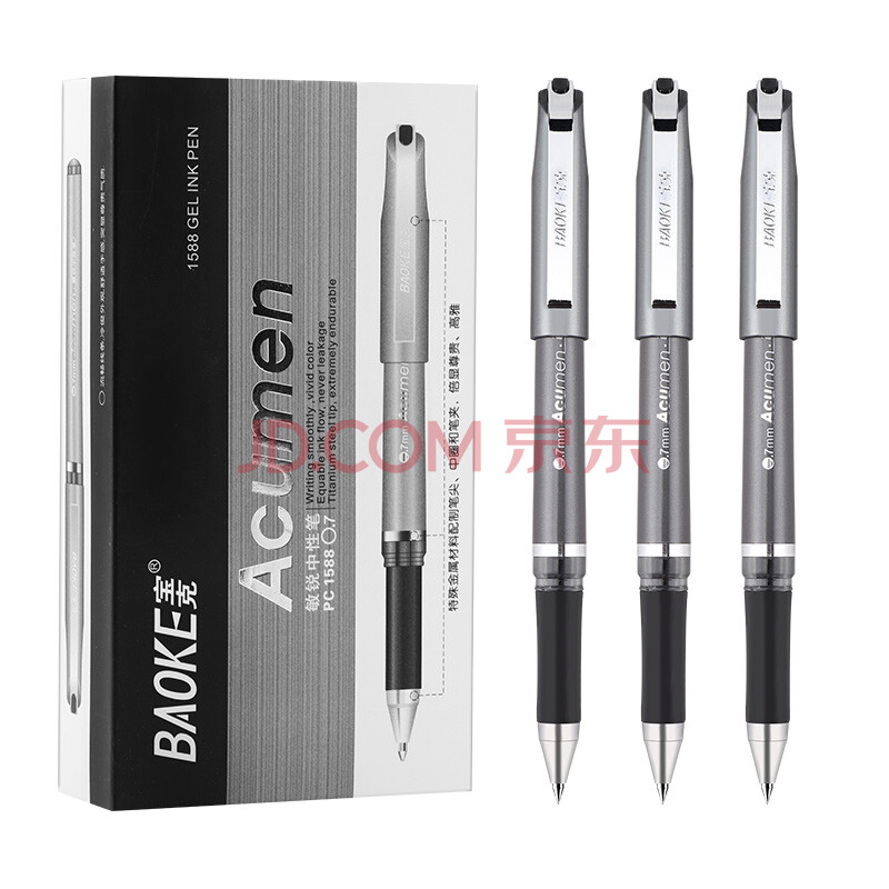 商品相册:宝克(BAOKE)PC1588 0.7mm敏锐中性笔办公水笔商务签名笔 黑色 12支/盒第