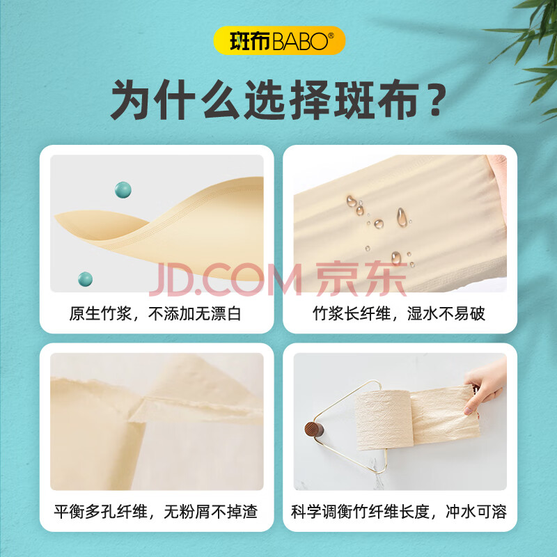 商品相册:斑布有芯卷纸 4层200克*27卷 原生竹浆 卷纸 卫生纸 卷筒纸 整箱第