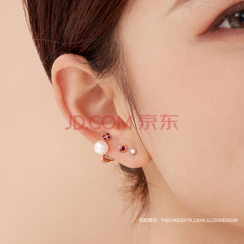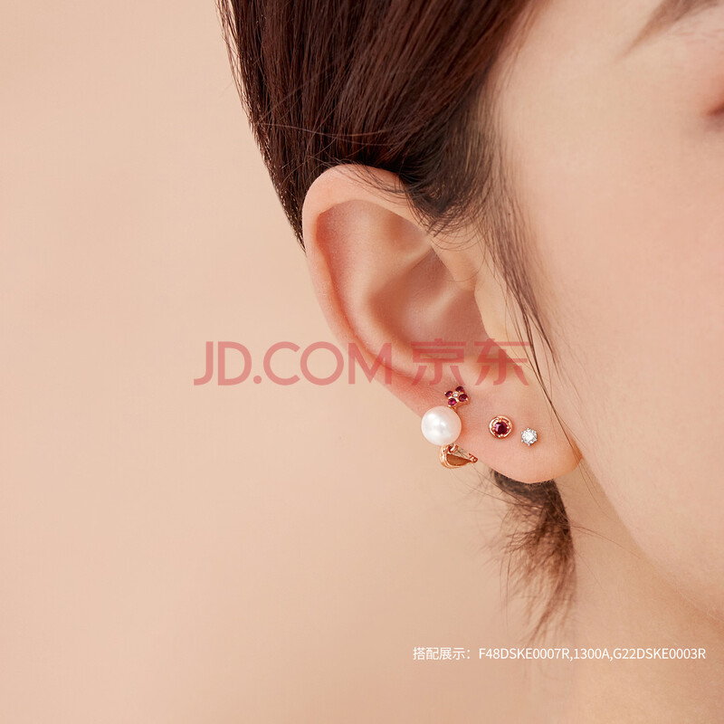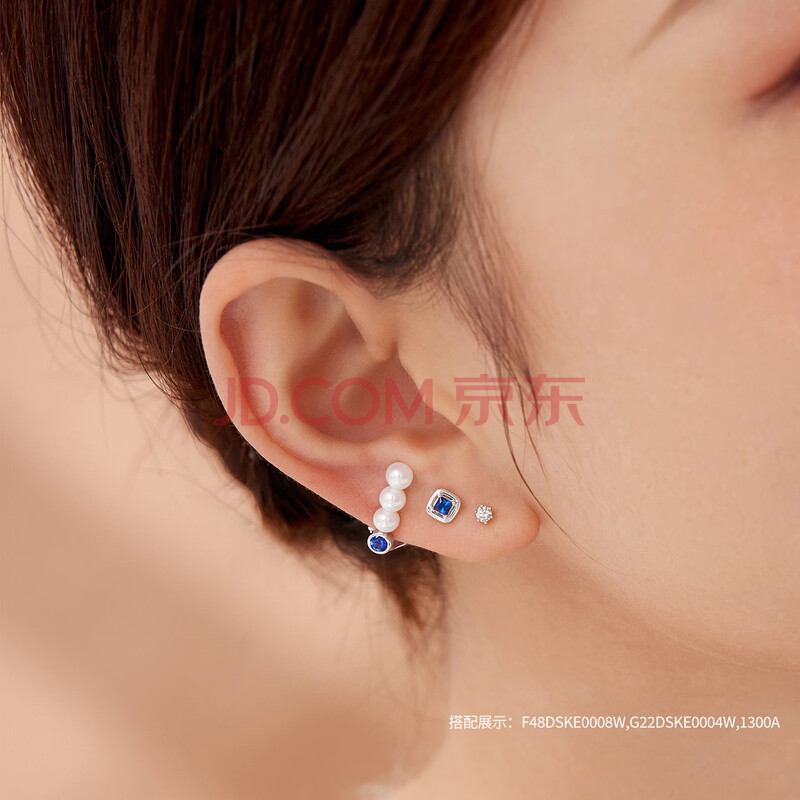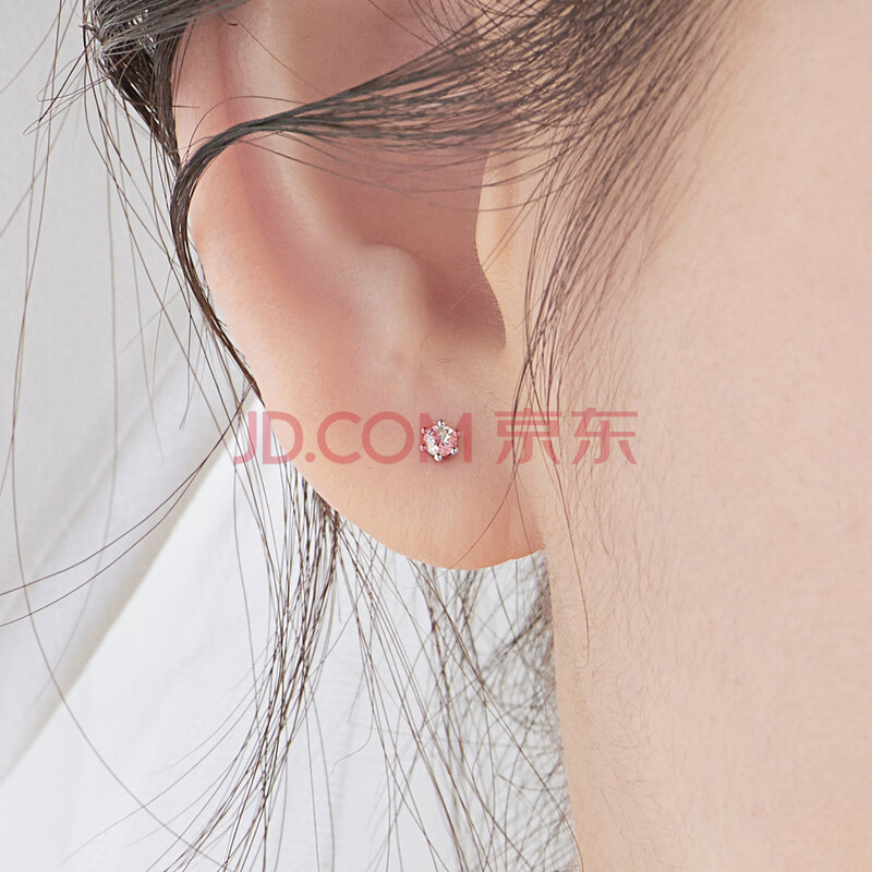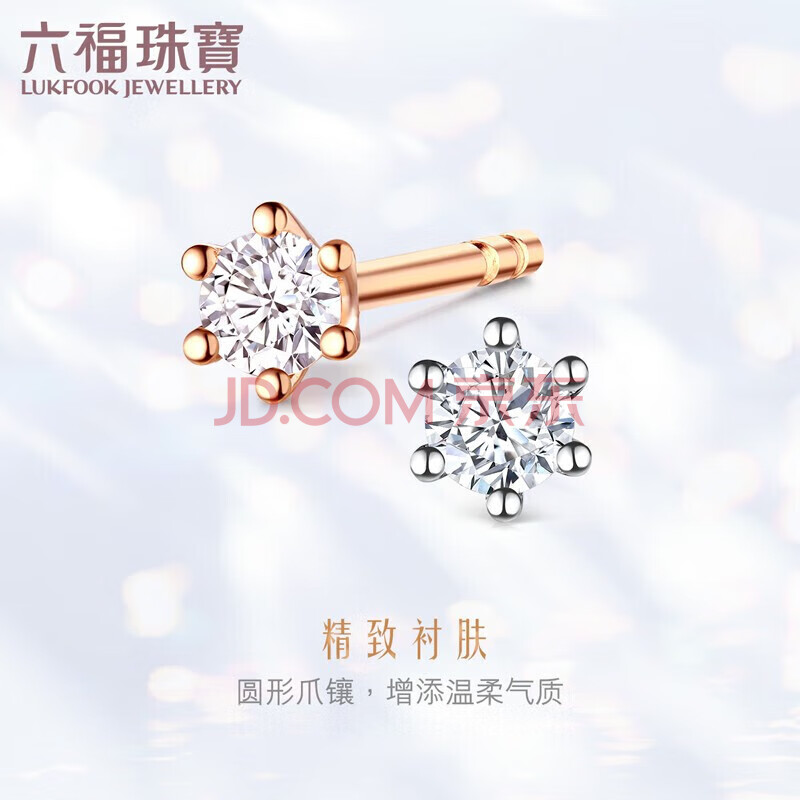 商品相册:六福珠宝 18K金钻石耳钉(单只)生日礼物女 共5分/白18K/约0.16克-白色第