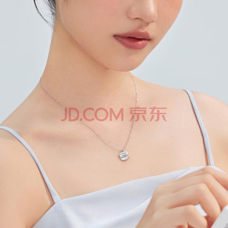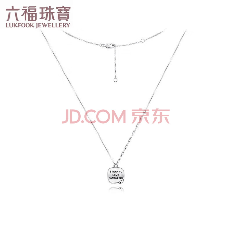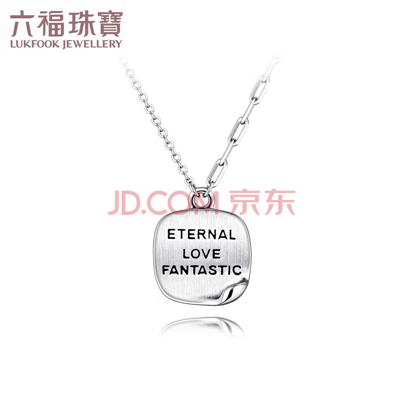 商品相册:六福珠宝 铂950英文字牌方糖小卷边铂金项链 计价 约3.85克第