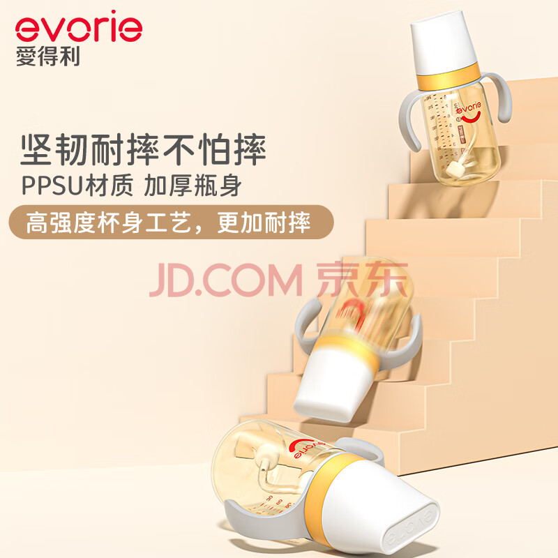 商品相册:爱得利(evorie)婴儿带吸管奶瓶套装 一瓶三用 6个月以上宝宝防漏PPSU奶瓶套装第