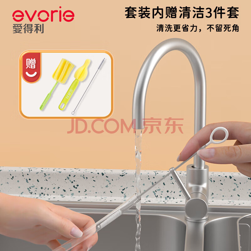 商品相册:爱得利(evorie)婴儿奶瓶套装 6个月以上宝宝宽口径奶瓶套装一瓶三用300ml 蓝第