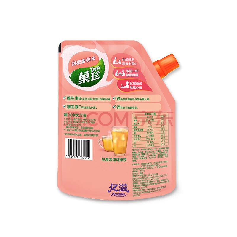 商品相册:菓珍 甜橙蜜桃味 果珍维C冲饮壶嘴装400g 果汁粉速溶饮料(包装随机)第
