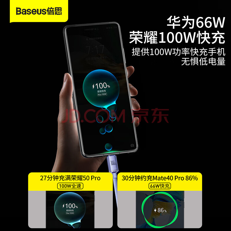 商品相册:倍思Type-C数据线适用66W华为充电线6A快充线Mate70Pro/P60/50荣耀100W超级快充小米第